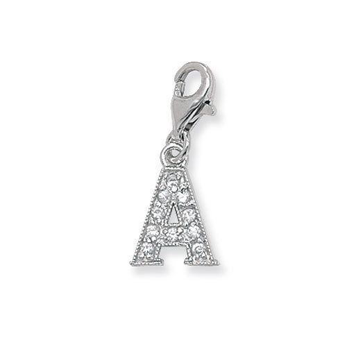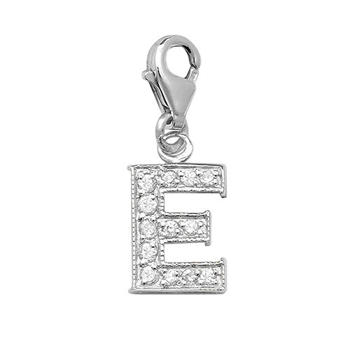 Sterling Silver Cubic Zirconia Set Initial "E" Charm With Lobster Catch.