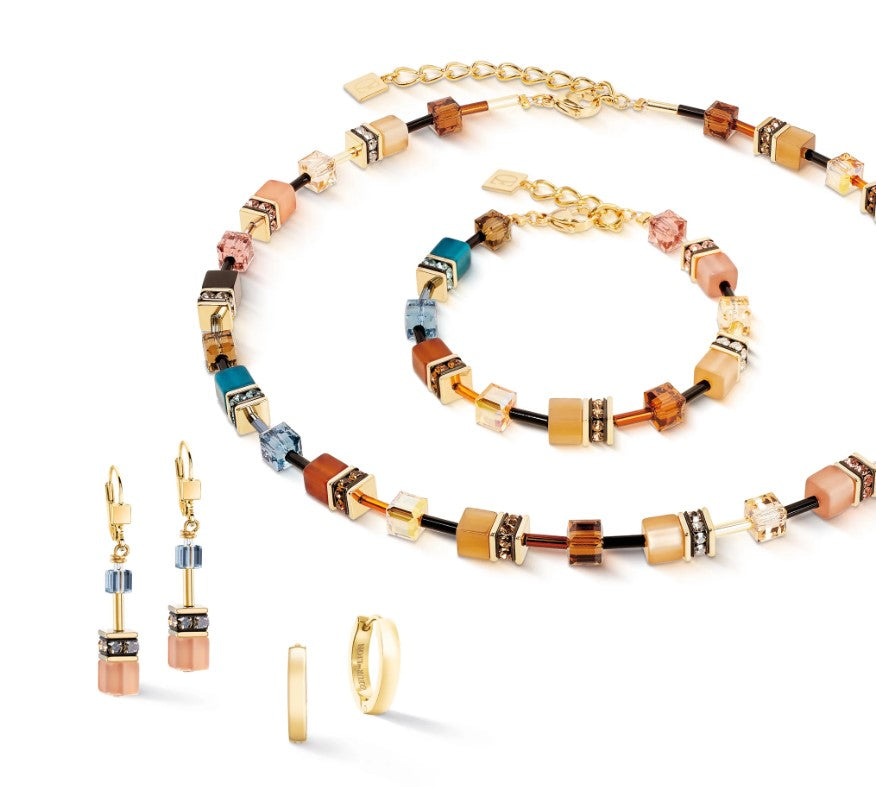 Contents: Earth Mirage gold necklace - matching bracelet - earrings - gold stainless steel hoop earrings